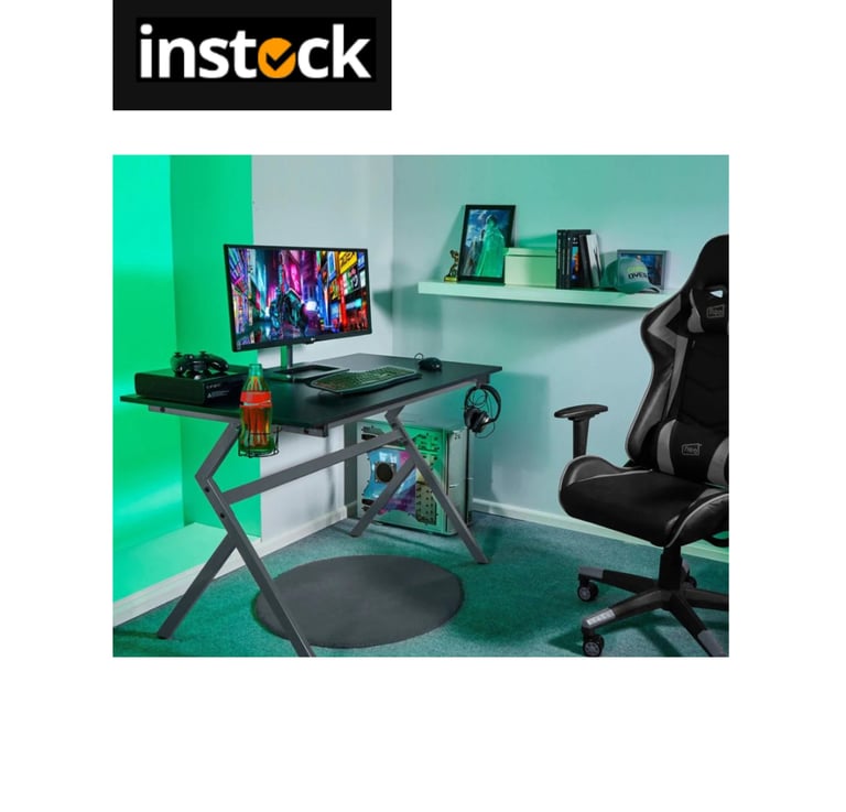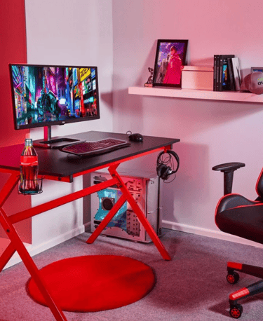 An ergonomic desk with a number of features to make your gaming experience more enjoyable